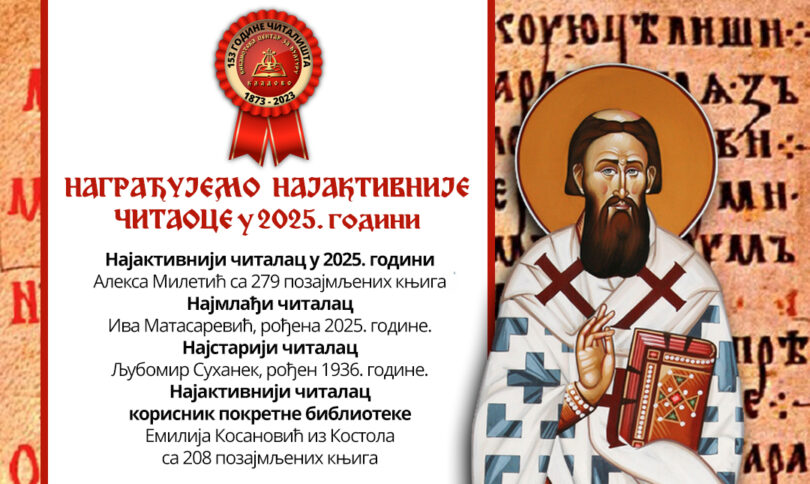 Svečani susret sa najvernijim čitaocima i dodela priznanja biće održani u petak, 30. januara 2026. godine, u 14.00 časova, u prostorijama Biblioteke u Kladovu.