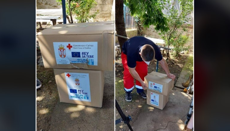 UN WOMEN, Evropska unija i Vlada Republike Srbije obezbedili su pomoć od 54 paketa hrane i 54 paketa higijene za 50 opština u Srbiji.