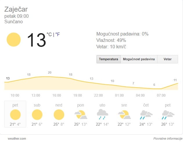 U Zaječaru će jutro biti hladno sa slabim prizemnim mrazom.