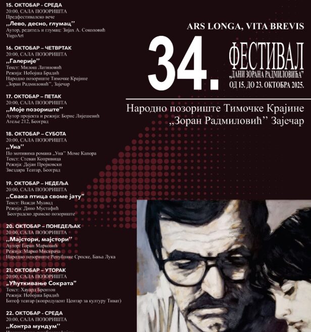 U Zajeačaru se od 15. do 23. oktobra održava festival „Dani Zorana Radmilovića“. Ova manifestacija se organizuje po 34. put u čast velikog pozorišnog glumca Zorana Radmilovića. Narodno pozorište Timočke Krajine „Zoran Radmilović” objavilo je program festivala.