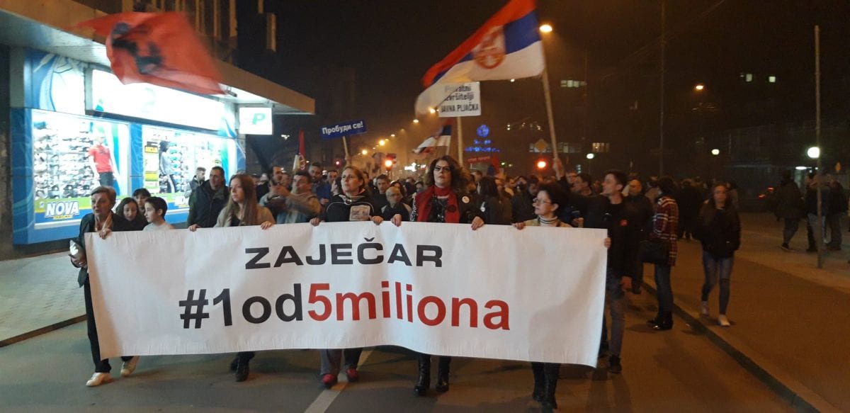 Zbog svih onih koji zloupotrebljavaju vlast, ali i onih koji krše Ustav i zakon, protiv zloupotrebe službenog položaja, ali i primanja i davanja mita novcem svih građana… zbog toga su se ovog petka okupili brojni zaječarci i učestvovali u 8. protestu protestu #1 od 5 miliona.
