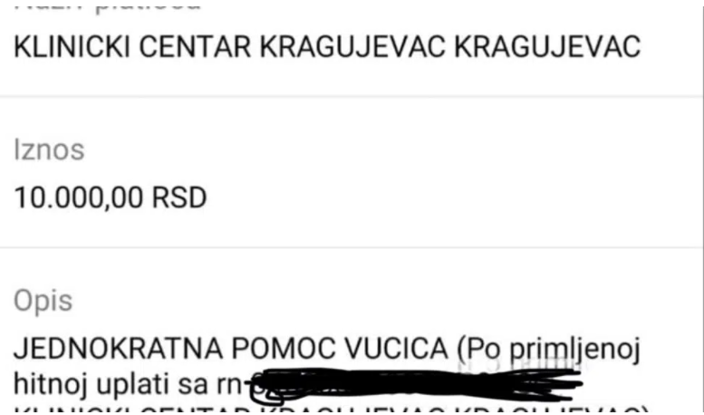 Više je nego očigledno da je čitava ova zavrzlama sa svrhom uplate nastala u samom Univerzitetsko-kliničkom centru Kragujevac. danas je kontaktirao i zdravstvene radnike u kragujevačkom Domu zdravlja i dobili smo informaciju da na njihovim uplatama takvog opisa nema.