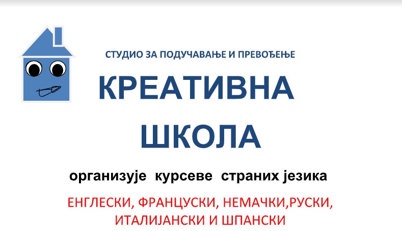 “Kreativna škola” organizuje kurseve engleskog, francuskog, nemačkog, ruskog, španskog i italijanskog jezika za decu predškolskog uzrasta, učenike osnovnih i srednjih škola, kao i za odrasle.