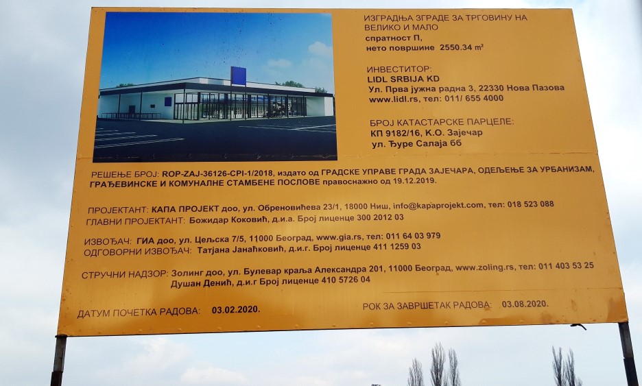 Inače, izgrađeni market u Zaječaru biće prizemni i obuhvataće neto površinu od preko 2550 m2. Izvođač radova je beogradska firma “GIA doo”, a rok za završetak radova je 3. avgust 2020. godine.