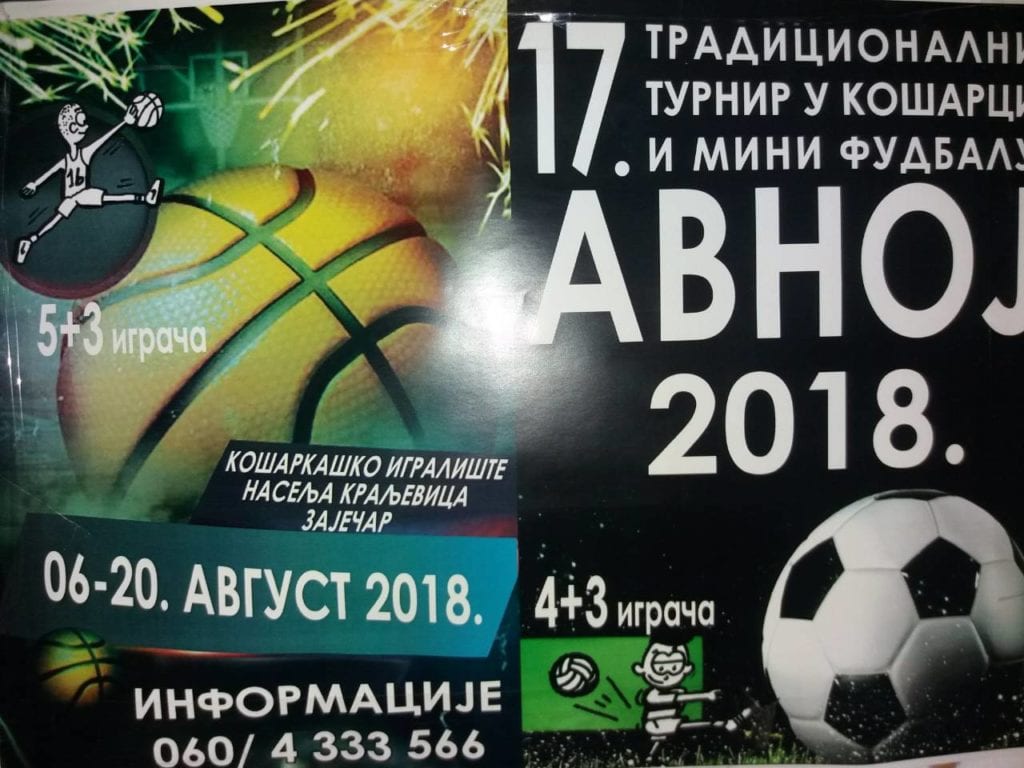 Od utorka, 7. avgusta u zaječarskom naselju “Kraljevica” počinje 17. po redu Turnir u košarci i malom fudbalu “AVNOJ 2018”.