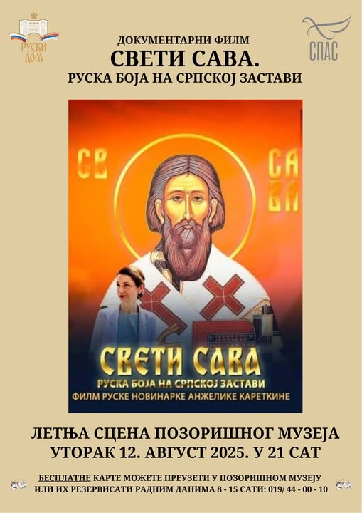 Pozorišni muzej u Zaječaru, u saradnji sa ruskom pravoslavnom televizijom „SPAS“ i Ruskim domom u Beogradu, organizuje projekciju filma „Sveti Sava. Ruska boja na srpskoj zastavi“ režiserke Anželike Karetkine.