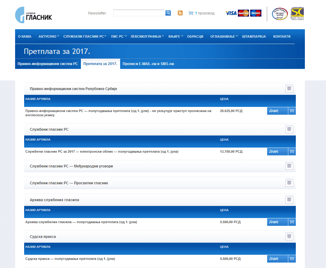 Pa se tako od 1. jula 2017. godine polugodišnja pretplata za štampani oblik Službenog glasnika naplaćuje  punih 18.700 dinara ili 150 evra, za elektronski oblik 13.750 dinara, dok za polugodišnju pretplatu na Pravno-informacioni sistem RS morate izdvojiti čak 20.625 dinara.