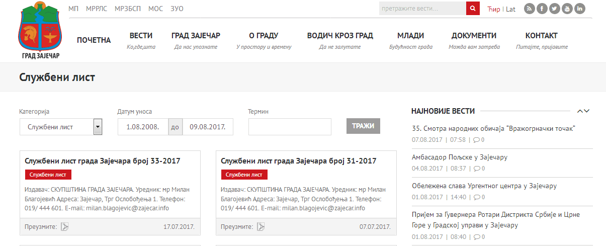 Zlu ne trebalo, odmah smo proverili i zvanični sajt Grada Zaječara na kojem su dokumenti, kao i Službeni list grada i dalje dostupni građanima BESPLATNO!
