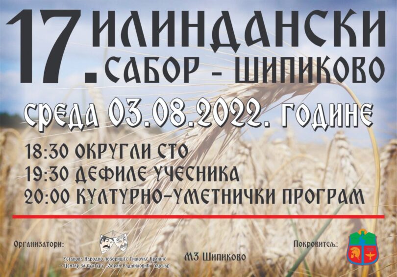 U Šipikovu će u sredu 3. avgusta po 17. put biti održana tradicionalna kulturno-umetnička manifestacija „Ilindanski sabor“.