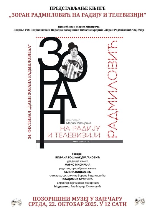 U okviru pratećeg programa 34. Festivala ,,Dani Zorana Radmilovića”, u sredu 22. oktobra u 12 sati u Pozorišnom muzeju biće predstavljena knjiga ,,Zoran Radmilović na radiju i televiziji”.