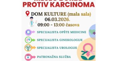 MESEC BORBE PROTIV KARCINOMA: Besplatni preventivni pregledi u Domu kulture u Knjaževcu