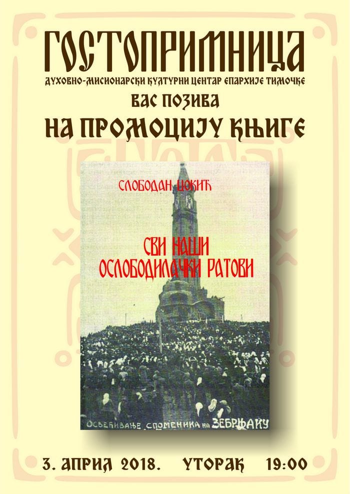 Promocija knjige “SVI NAŠI OSLOBODILAČKI RATOVI” 3. aprila u zaječarskoj Gostoprimnici
