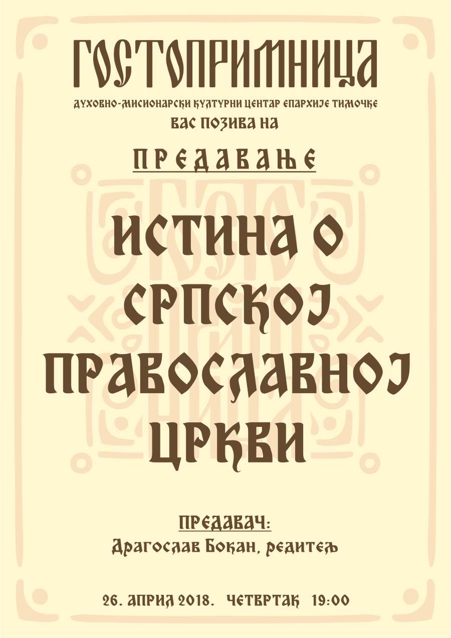 Predavanje u Gostoprimnici: ISTINA O SRPSKOJ PRAVOSLAVNOJ CRKVI