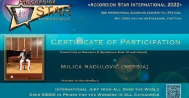 Učenica zaječarske muzičke škole Milica Radulović osvojila treće mesto na online takmičenju u Americi