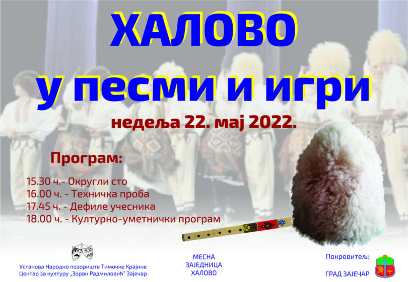U Halovu će u nedelju 22. maja biti održana druga po redu manifestacija „Halovo u pesmi i igri“ sa ciljem očuvanja nematerijalnog kulturnog nasleđa ovog kraja.