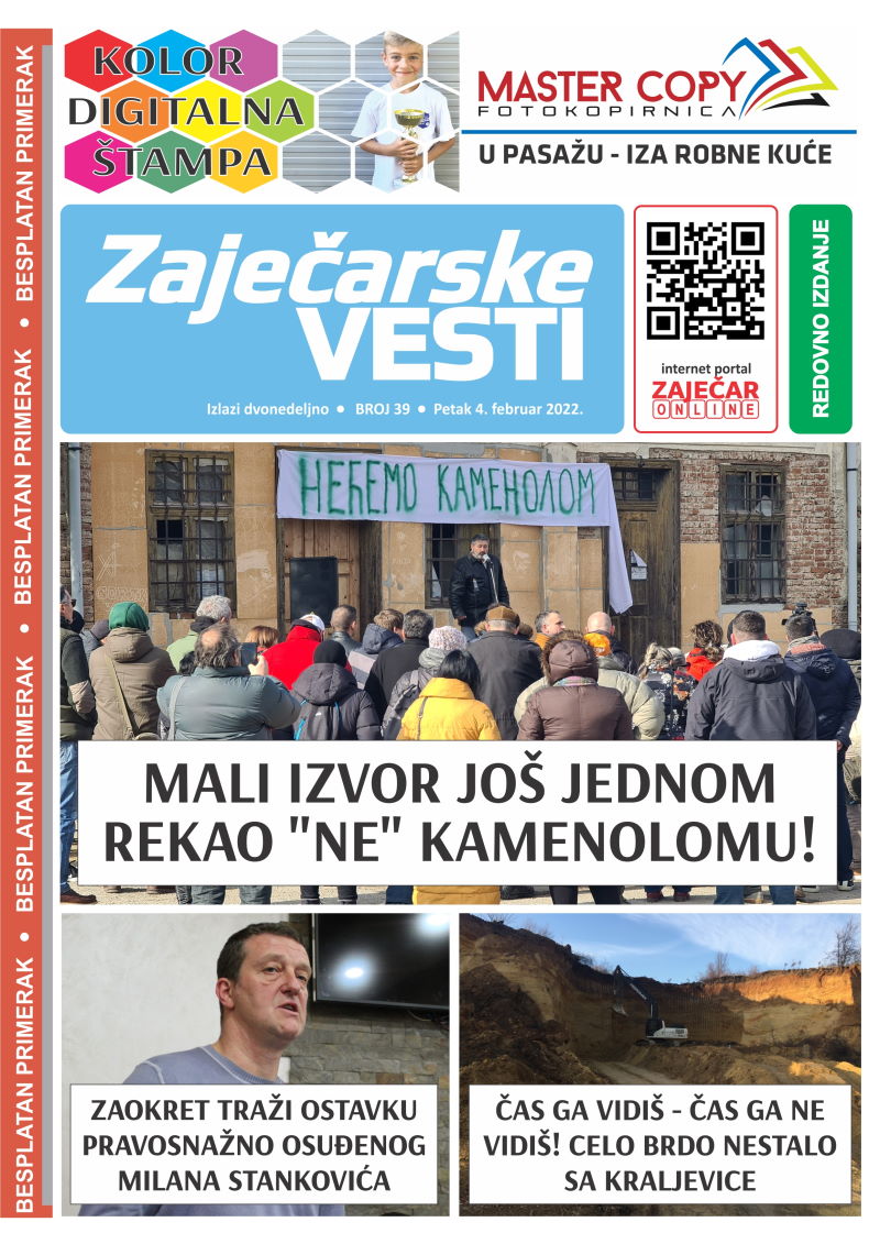 Najnoviji, 39. broj Zaječarskih vesti biće podeljen na gradskom skveru u petak, sa početkom u 9:30.