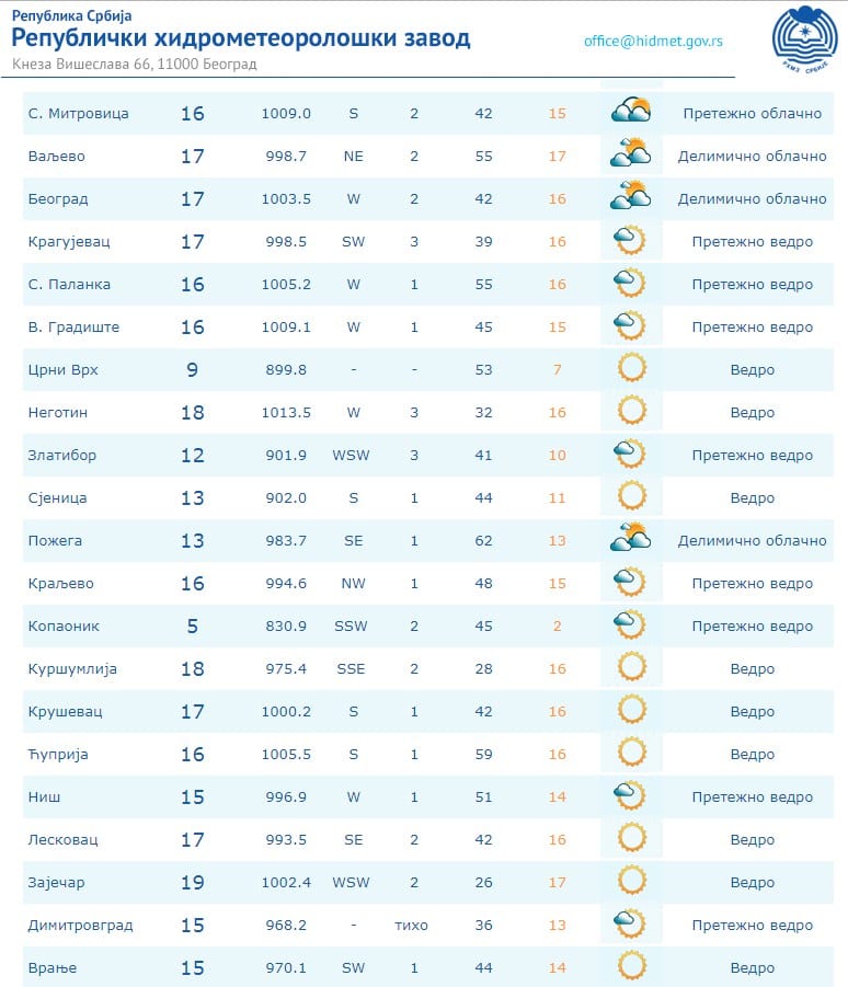 U Srbiji se danas očekuje pretežno sunčano i toplo, a sredinom dana i posle podne postepeno naoblačenje sa severa, koje će krajem dana i tokom noći usloviti kišu.