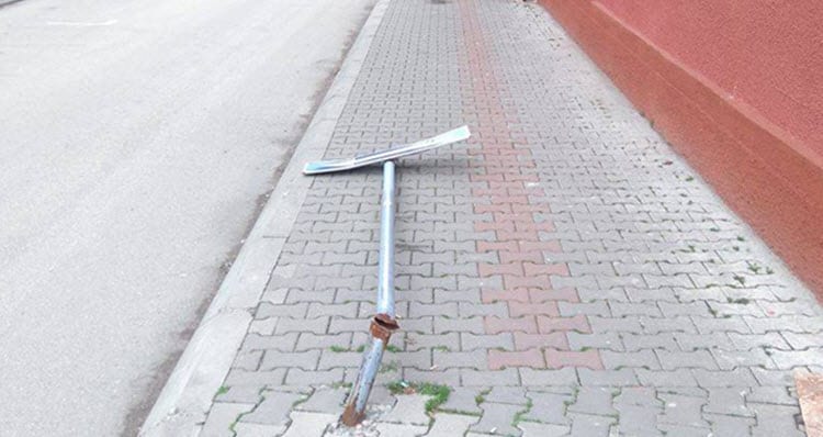 Posle rušilačkih pohoda u ulici Timočke bune pre godinu dana, opet vandali uništavaju u istoj ulici. Ovog puta ne meti je bio znak!!! Objektiv naše kamere je danas oko 14.30h na uglu ulica Timočke bune i Kneginje Ljubice, snimio slomljen znak koji je oboren na trotoar.